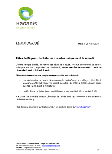 info déchèterie week-end de Pâques