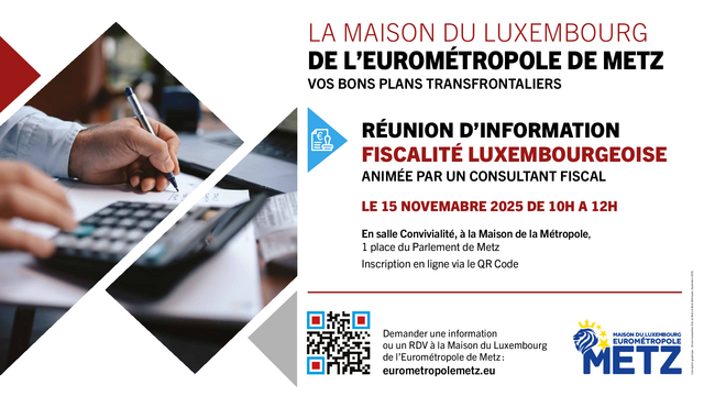 Inscription obligatoire : https://demarches.services.eurometropolemetz.eu/metz-metropole/s-inscrire-aux-evenements-de-la-maison-du-luxembourg-de-l-eurometropole-de-metz/