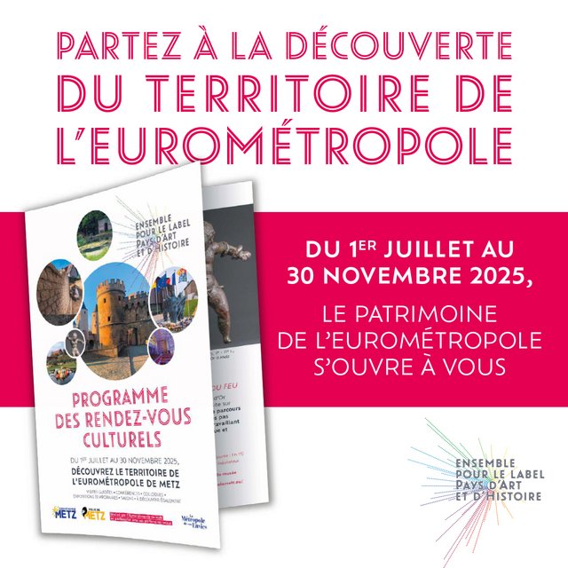 Dans le cadre du projet d’extension du label Villes et Pays d’art et d’histoire au territoire métropolitain, l’Eurométropole de Metz, en partenariat avec les acteurs culturels du territoire, a conçu pour la deuxième année consécutive, un programme des rendez-vous culturels.